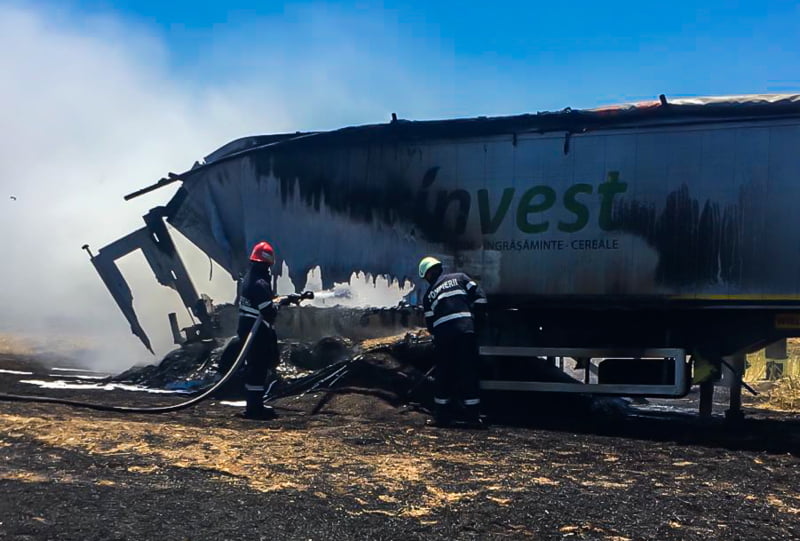 Un camion a luat foc într-un lan de grâu (FOTO)