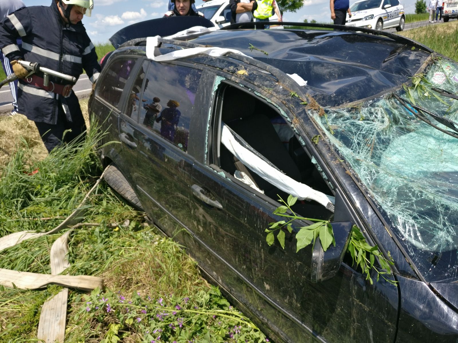 Şofer accidentat, după ce s-a răsturnat cu BMW-ul