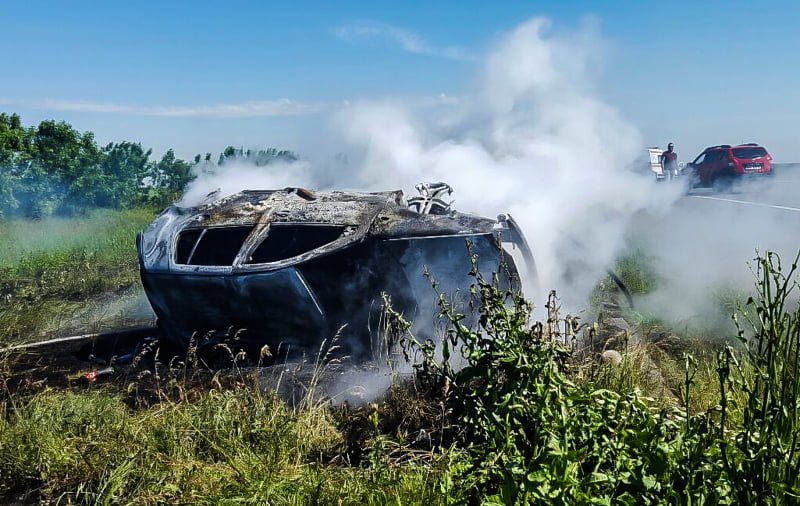 FOTO! Autoturism în flăcări în urma unui accident rutier!