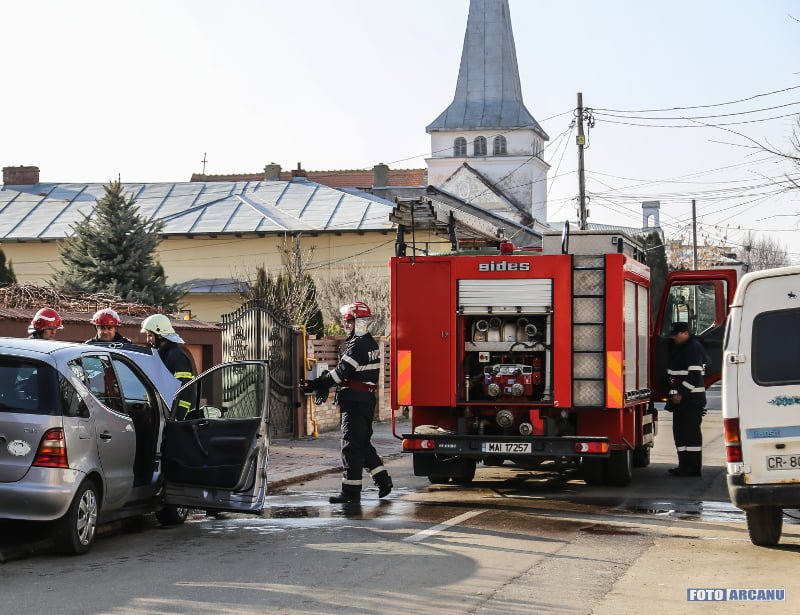 Panică în zona Bisericii Romano-Catolice! O maşină a luat foc