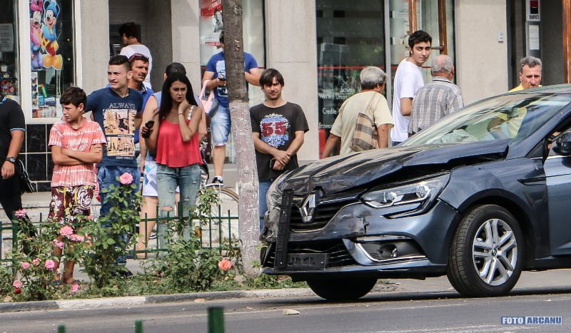 Două mașini avariate după o coliziune în intersecția de la Petrom