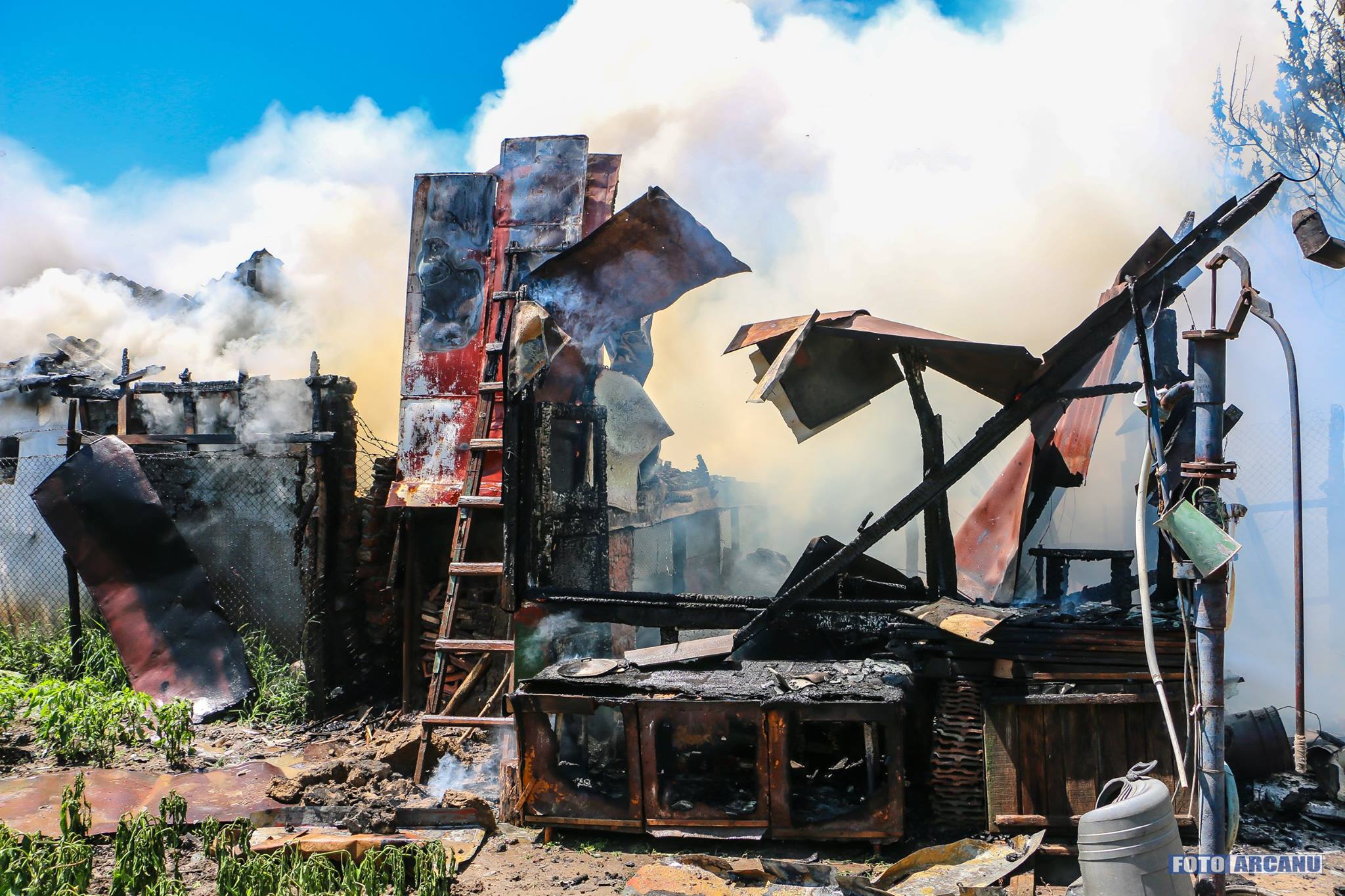 Au rămas pe drumuri. Casa unei familii sărace, cu cinci copii, din Giurgiu, a fost mistuită de flăcări
