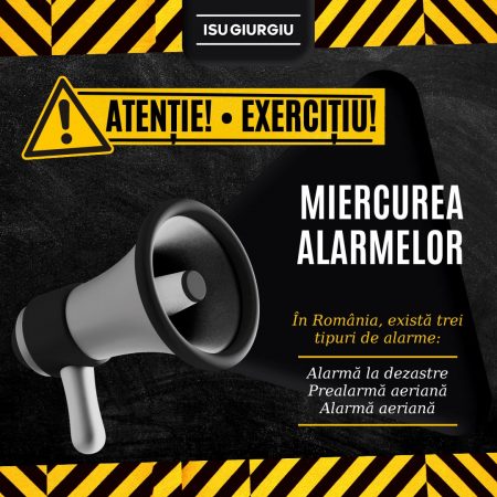 ISU Giurgiu. Exercițiu de alarmare publică „MIERCUREA ALARMELOR”