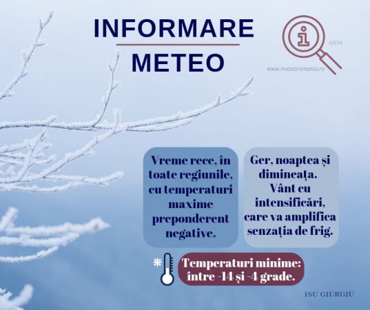 ISU Giurgiu. Meteorologii ne atenţionează că până vineri, vremea va fi rece în toate regiunile țării