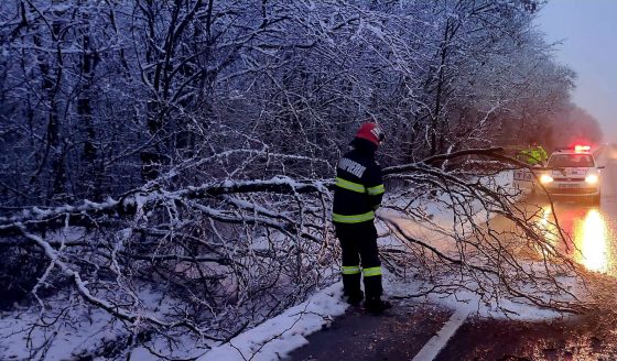 Copac căzut pe partea carosabilă, pe DN 5, degajat de pompierii giurgiuveni, în această dimineaţă (FOTO)