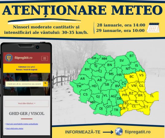Administrația Națională de Meteorologie a emis o nouă atenționare meteorologică tip 𝗖𝗢𝗗 𝗚𝗔𝗟𝗕𝗘𝗡, valabilă până Continue reading