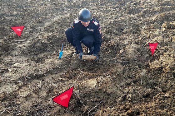 ISU Giurgiu. Proiectil exploziv, descoperit pe un teren agricol (FOTO)