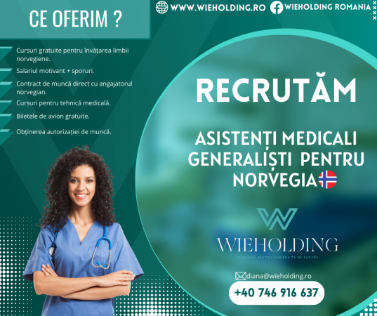 Wieholding recrutează asistenţi medicali generalişti pentru Norvegia! Aplică acum şi rezervă-ţi locul!