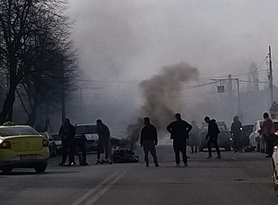 ACUM. ACCIDENT RUTIER în municipiul Giurgiu. O motocicletă a luat foc! (FOTO)
