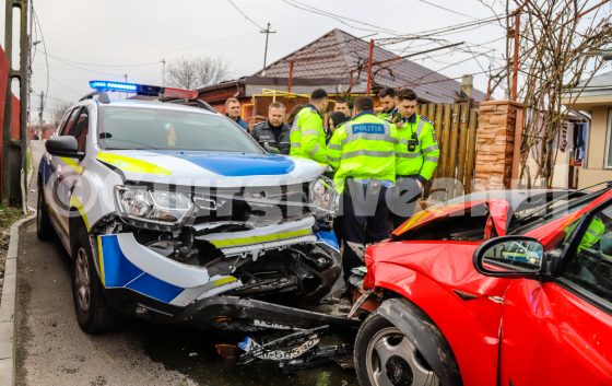 Urmărire ca-n filme pe străzile Giurgiului. Şoferul unui autoturism a intrat frontal în maşina Poliţiei! A fost prins pe strada Oltului! (FOTO)