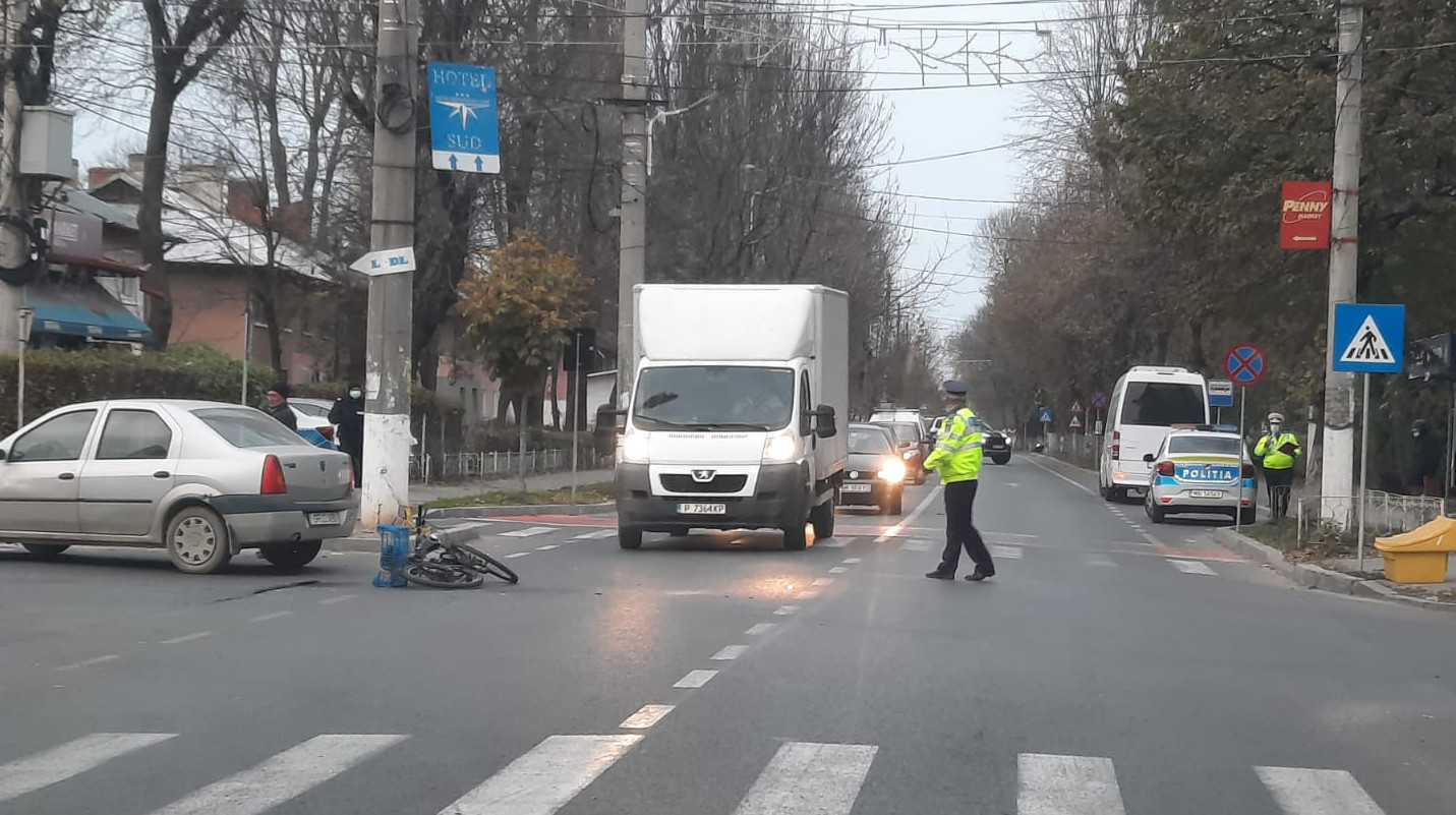 ACUM. Biciclist accidentat la intersecția străzilor 1 Decembrie cu Academician Miron Nicolescu, în municipiul Giurgiu (FOTO)