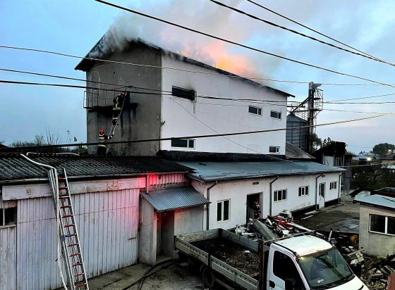 ISU Giurgiu: Moară dezafectată din oraşul Bolintin Vale, cuprinsă de flăcări (FOTO)