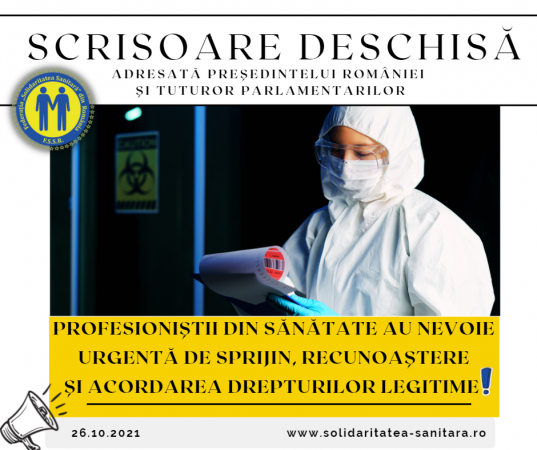 Federația „Solidaritatea Sanitară” din România: Scrisoare deschisă adresată președintelui României și tuturor parlamentarilor