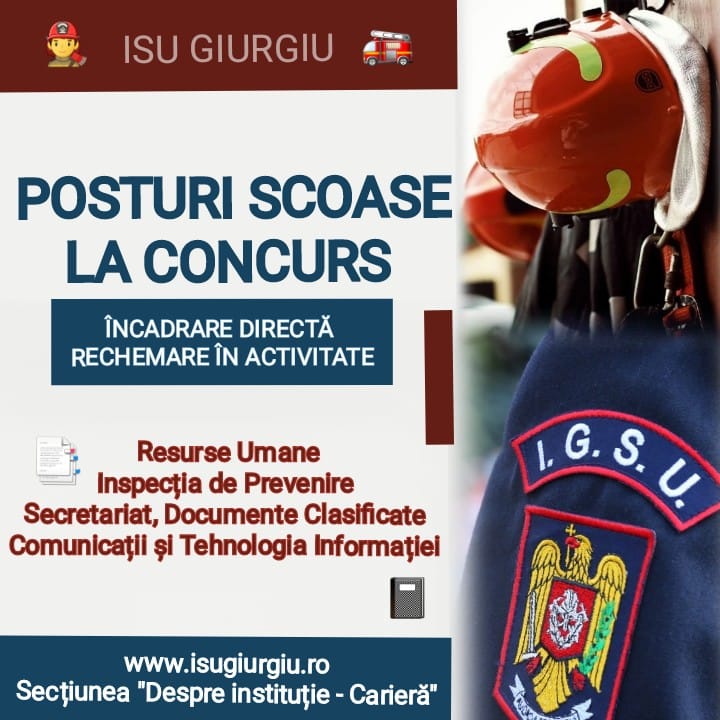 ISU Giurgiu. Posturi scoase la concurs, prin încadrare directă și/sau rechemare în activitate