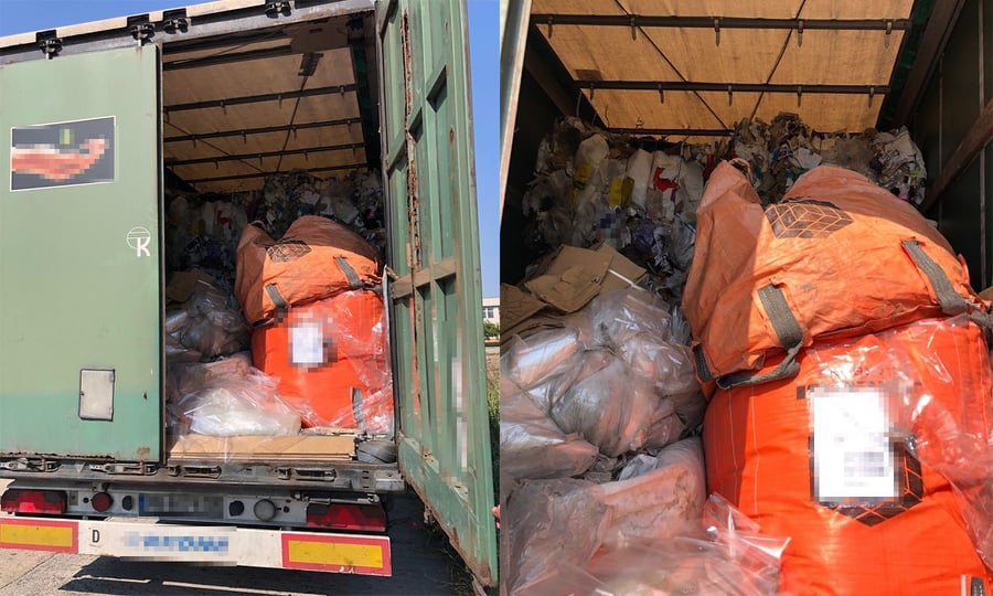 Peste 18,5 tone deșeuri din diferite materiale transportate ilegal, oprite la P. T. F. Giurgiu