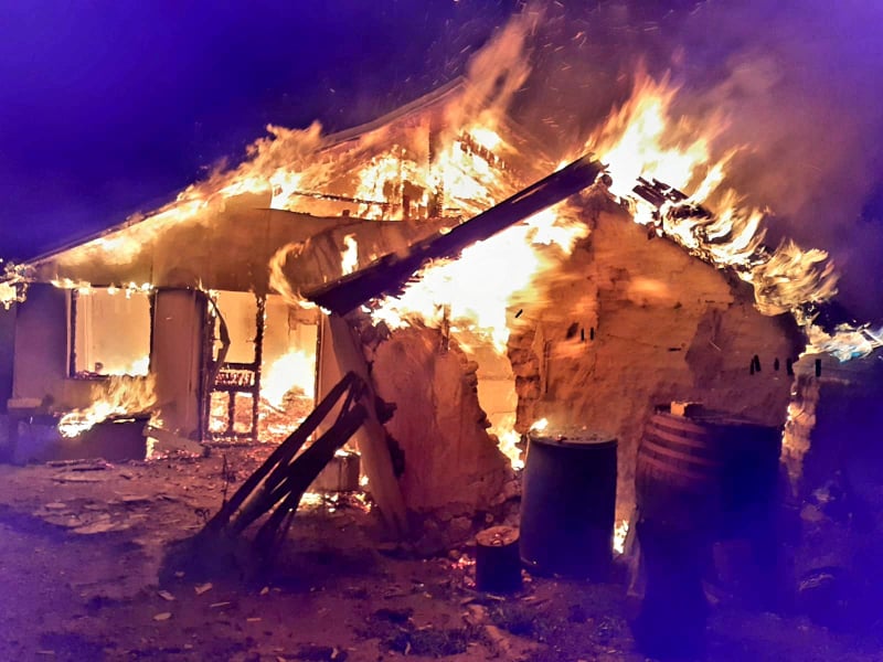 ISU Giurgiu. Casă mistuită de flăcări (FOTO)