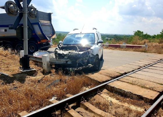 Autoturism acroşat de un tren de călători, la halta Onceşti! (FOTO)