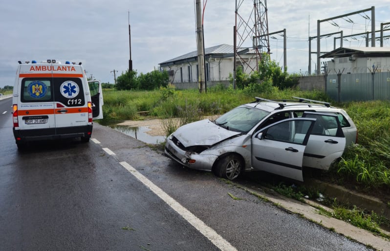 O şoferiţă a ieşit cu maşina „în decor” pe DN 5, la Uzunu! (FOTO)