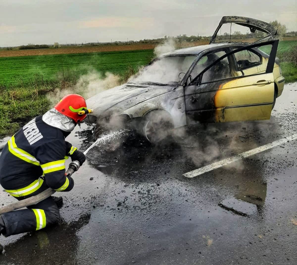 ISU Giurgiu. Autoturism cuprins de flăcări! (FOTO)