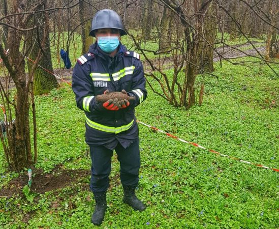 Bombă de aruncător (calibrul 82 mm) rămasă neexplodată, descoperită la Crevedia Mare (FOTO)