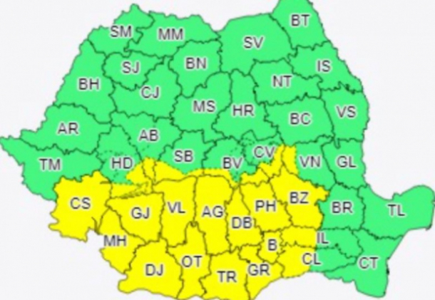 AVERTIZARE ANM. COD GALBEN de ninsori abundente în Giurgiu!