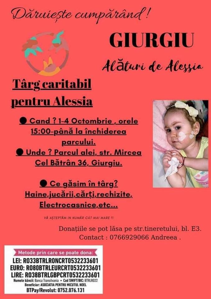Şi Giurgiu este alături de Alessia! Dăruieşte cumpărând… la Târgul caritabil din Parcul Alei!