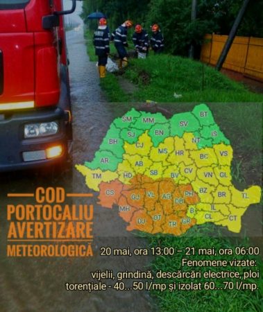 ISU. COD PORTOCALIU de instabilitate atmosferică accentuată și ploi abundente, în județul Giurgiu. Măsuri de prevenire a situațiilor de urgență