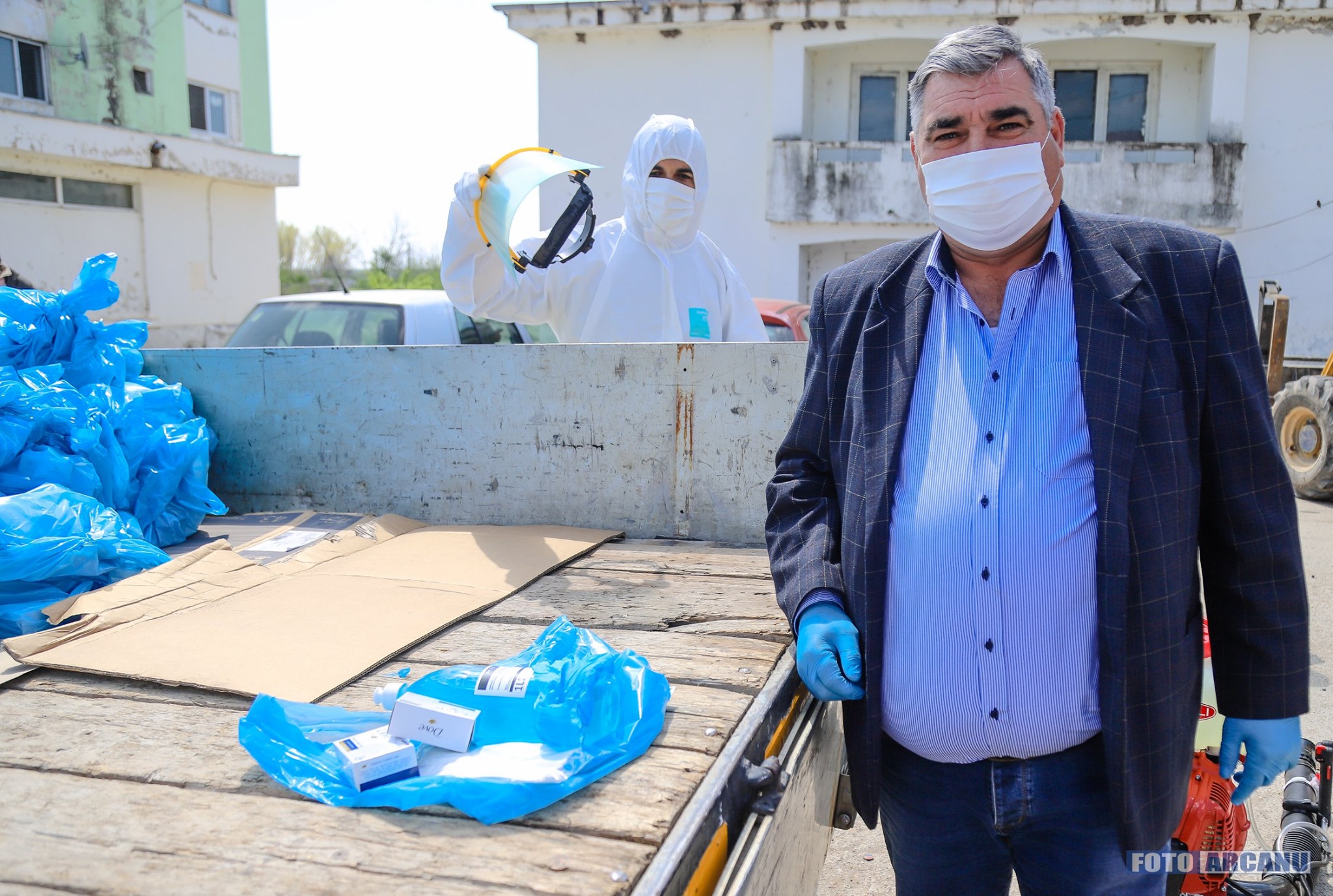 Dezinfecție generală la Putineiu, făcută de primarul Gheorghe Breazu și câţiva voluntari (FOTO)
