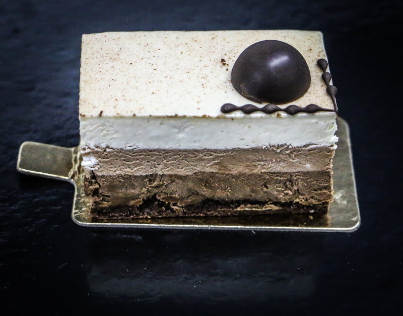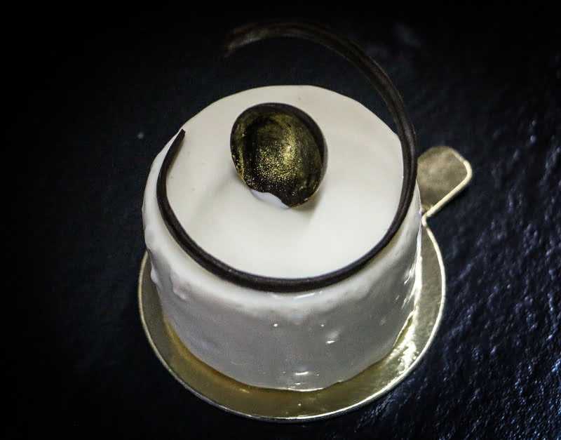 Preparată din bavaroise de cafea, cremă de ciocolată neagră, macaron, ciocolată cuprinsă în ceșcuțe apetisante de ciocolată neagră.