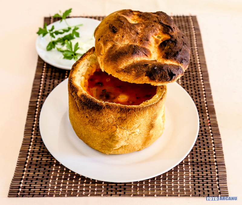 Ce n-a văzut… Giurgiu: ciorbă de fasole în bol de pâine!