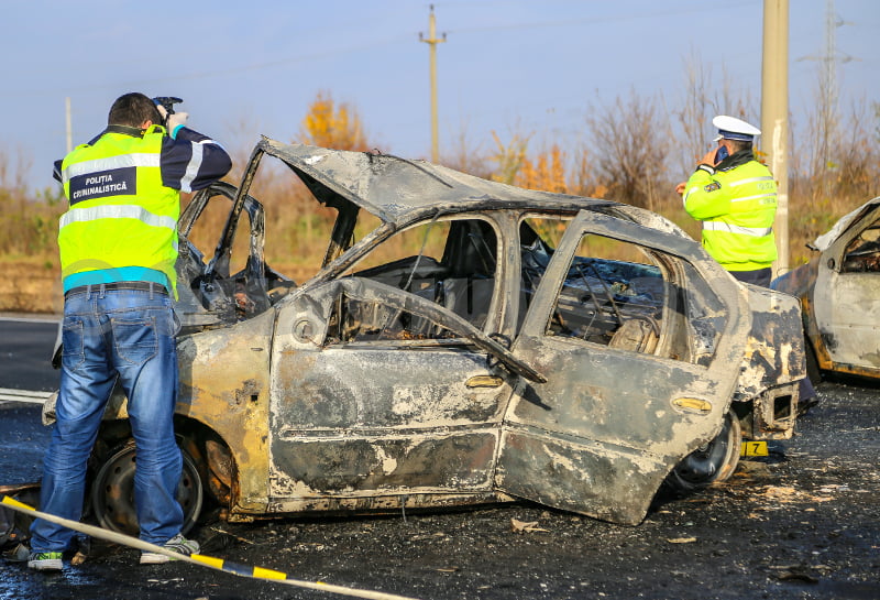 Reamintim că ieri, în jurul orei 15, patru persoane au murit în chinuri după ce autoturismele în care se aflau au intrat în coliziune şi au luat foc. Cei patru ocupanţi ai autoturismelor nu au avut nicio şansă, rămânând încarceraţi între fiarele contorsionate şi arzând de vii.