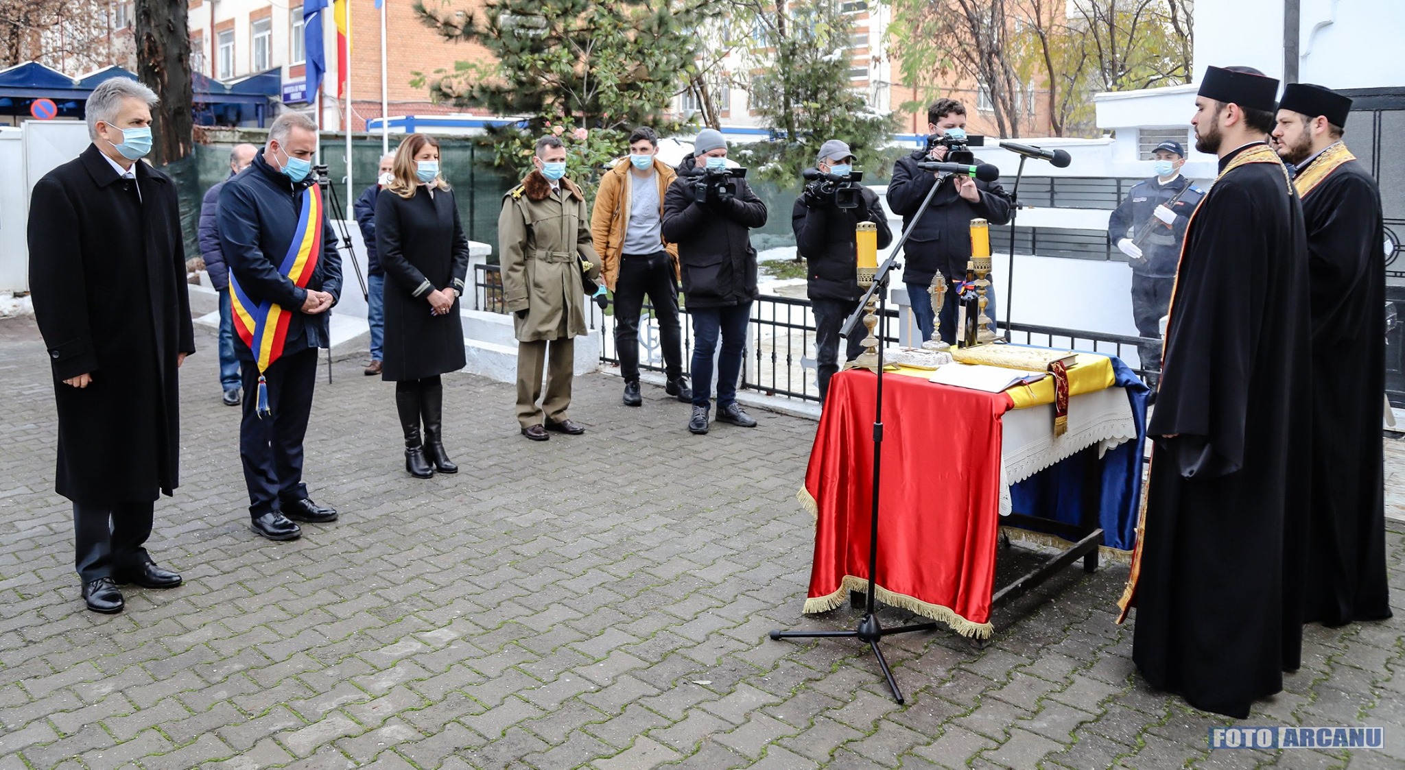 Ziua Naţională a României a fost sărbătorită astăzi, la Giurgiu, printr-o ceremonie religioasă şi depuneri de coroane, fără public, din cauza măsurilor restrictive impuse de pandemia de coronavirus.