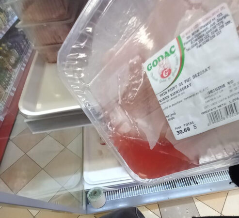 -nerespectarea vecinătății produselor (carne de pasăre vrac fiind expusă în aceiași vitrină frigorifică alături de peștele congelat)
