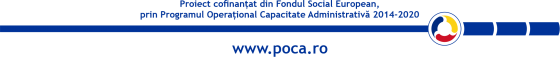 Proiectul a fost finantat prin Programul Operațional Capacitate Administrativa 2014 – 2020, Axa prioritara – Administrație publica și sistem judiciar accesibile și transparente”, Obiectivul Specific 2.1: Introducerea de sisteme și standarde comune în administrația publică locala ce optimizează procesele orientate către beneficiari în concordanta cu SCAP.