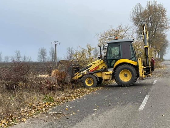 Echipaje ale Direcției Județene de Transport, Administrarea Drumurilor Județene și Control Trafic Giurgiu au intervenit astăzi, 2 noiembrie 2021, pe DJ 505, tronsonul Izvoarele – Valea Bujorului, pentru tăierea copacilor uscați de pe marginea drumului.