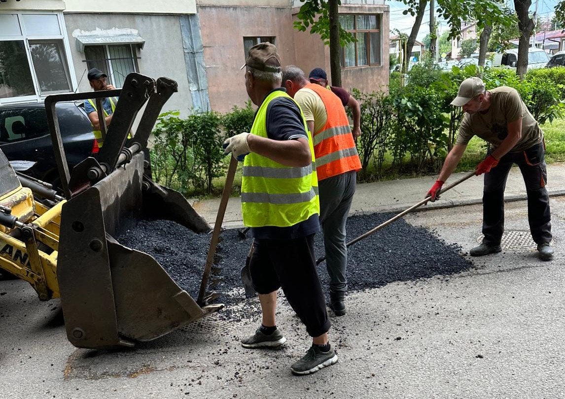 Giurgiu Construcții Editilitare – societate subordonată Consiliului Local – efectuează în această perioadă, lucrări de întreținere curentă, asfaltare prin plombare, în cartierul Negru-Vodă, bd-ul Daciei adiacent școala gimnazială „Academician Marin Voiculescu”, pe strada Gorneni și în cartierul Teatrul de Vară.