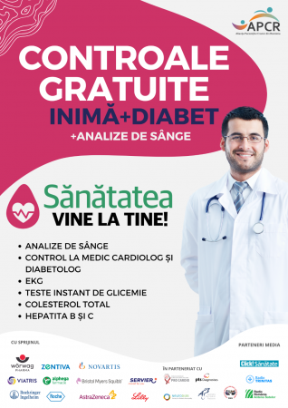 Pentru al treilea an consecutiv, în perioada martie – iunie, peste o mie de persoane din mediul rural vor beneficia de controale medicale gratuite pentru diabet zaharat, boli cardiovasculare, obezitate și hepatita B și C în cadrul caravanei „Sănătatea vine la tine”, un proiect al Alianței Pacienților Cronici din România (APCR).
