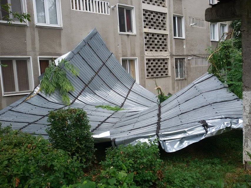 (acoperişul unui bloc din zona Policlinică, smuls de furtună)