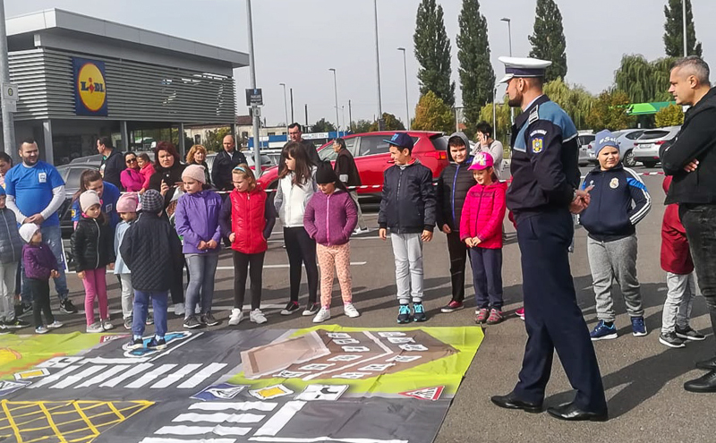 Pe 30 septembrie, de la ora 11.00, polițiștii rutieri giurgiuveni au fost prezenţi în parcarea Lidl pentru a le explica participanților semnele și regulile de circulație și a le oferi sfaturi pentru siguranța pietonală. Astfel, fiecare copil care s-a alăturat inițiativei a avut șansa să învețe direct de la polițiști care este comportamentul unui pieton exemplar în trafic.