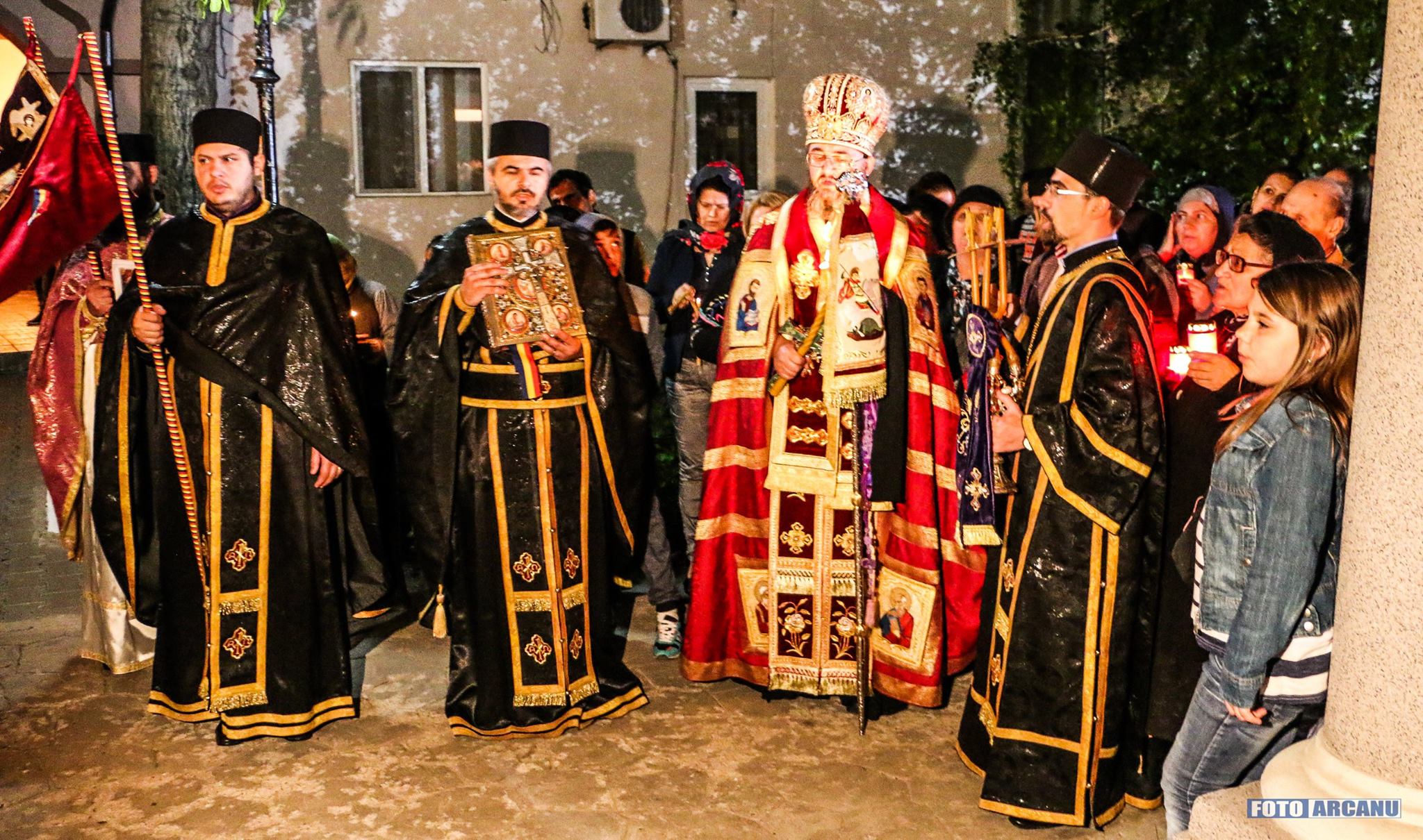 Aseară, în Vinerea din Săptămâna Patimilor, s-a făcut pomenirea morţii şi îngropării Mântuitorului nostru Iisus Hristos. Credincioșii din centrul municipiului, care au participat la slujbă la Catedrala Episcopală „Adormirea Maicii Domnului”, ca de altfel la toate bisericile din Eparhie, au mers în procesiune, în frunte cu Preasfinţitul Părinte Ambrozie, Episcopul Giurgiului, înconjurat de un sobor de preoţi și diaconi, ocolind sfântul lăcaş, conform tradiţiei ortodoxe.