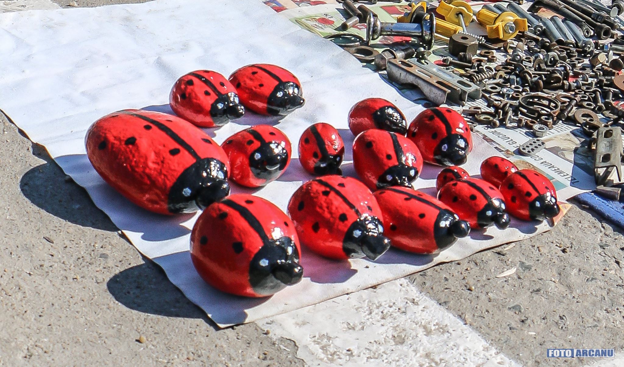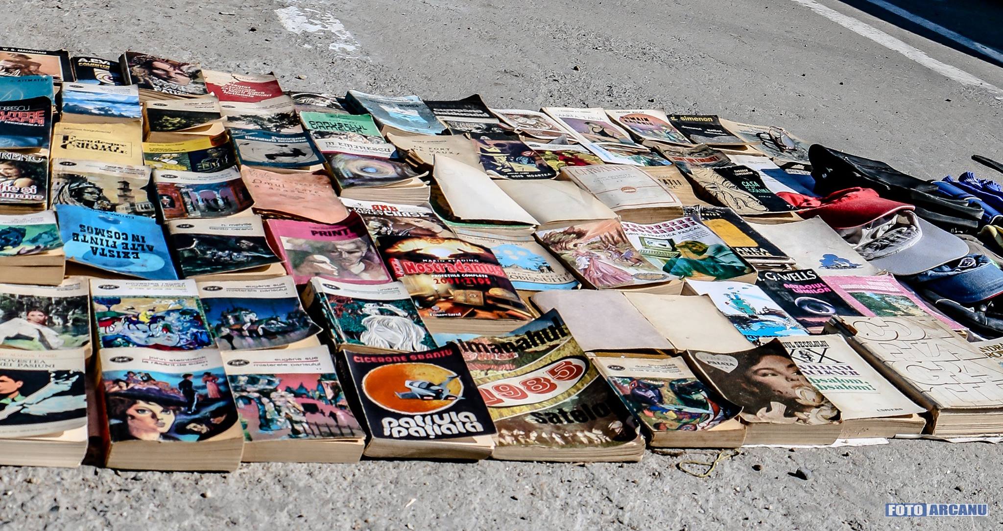 Cărțile (cu preţuri începând de la doi lei bucata), diverse „micro-unelte”, haine (noi sau second hand), diverse obiecte de artizanat, biciletele, piese de schimb pentru autoturisme… sunt doar câteva dintre obiectele importante ale „magazinului” ambulant, expuse pe tejghelele din plastic sau pânză, așezate direct pe caladarâm, din care aproape că nu ai cum să nu alegi ceva.