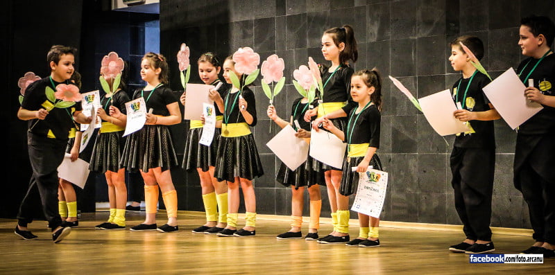 Spectacolul intitulat „Dansul primăverii” a reunit pe scenă şase trupe de copii din Bucureşti şi cinci trupe de copii din Giurgiu, cu vârste cuprinse între patru şi 18 ani.