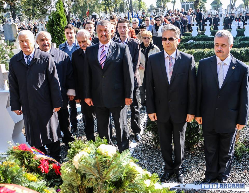 Ceremonia dedicată acestei zile a început astăzi, la ora 10.00, la Monumentul Eroilor din Cimitirul Smârda, cu întâmpinarea oficialităților județene, municipale și militare cu marșul de întâmpinare intonat de Fanfara Centrului Cultural “Ion Vinea” şi salutarea drapelului de luptă.