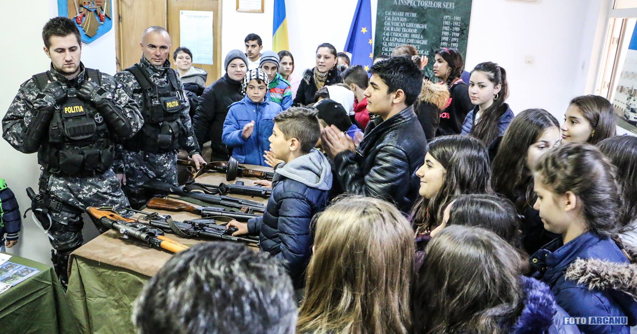 Astfel, elevii care au participat la eveniment, chiar dacă a plouat, au putut vedea tehnica din dotarea IPJ, autoturisme, autoutilitare, dar şi armamentul şi echipamentele poliţiştilor.