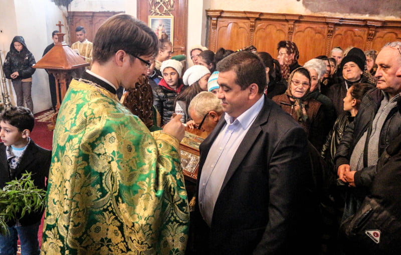 A stat toată slujba de Florii în strană, a ascultat şi s-a rugat. Ne referim la edilul şef Florin Nidelea. La Sfânta Liturghie, corul alături de preoţi şi credincioşii din Biserică i-au cântat „La Mulţi Ani!” edilului şef.