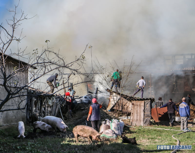 IMG_9467O familie din localitatea Oinacu a rămas fără hrana pentru animale în urma unui incendiu care a izbucnit în această după-amiază. Depozitele de furaje au fost mistuite de flăcări, iar o vacă aflată într-o anexă a murit. Celelalte animale şi păsările din gospodărie au fost salvate la timp. Intervenţia pompierilor durează de ore întregi, fiind îngreunată de faptul că furajele întreţin arderea iar pompierii vor să se asigure că incendiul este lichidat.