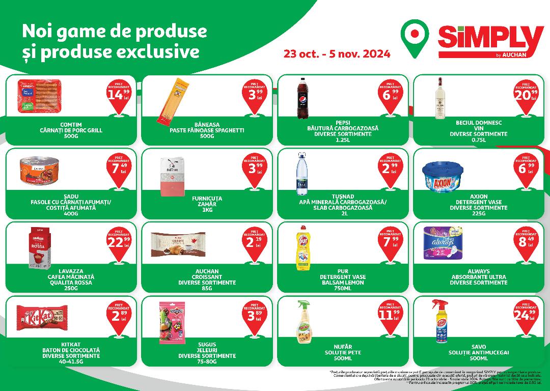 Francizele Simply se remarcă prin produsele marcă proprie Auchan, renumite pentru raportul excelent calitate-preț, produse proaspete din Brutăria Auchan preparate de către maeștri bucătari doar din făină românească, apă, sare și maia, dar și prin mult apreciatele prăjituri de la Auchan.