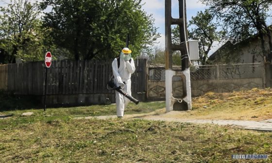 Dezinfecție generală la Putineiu, făcută de primarul Gheorghe Breazu și câţiva voluntari (FOTO)