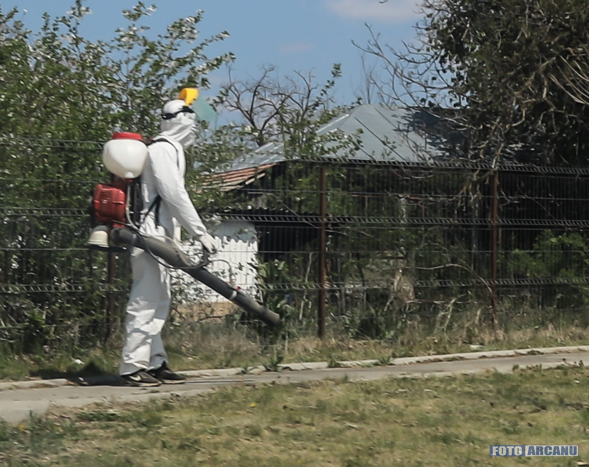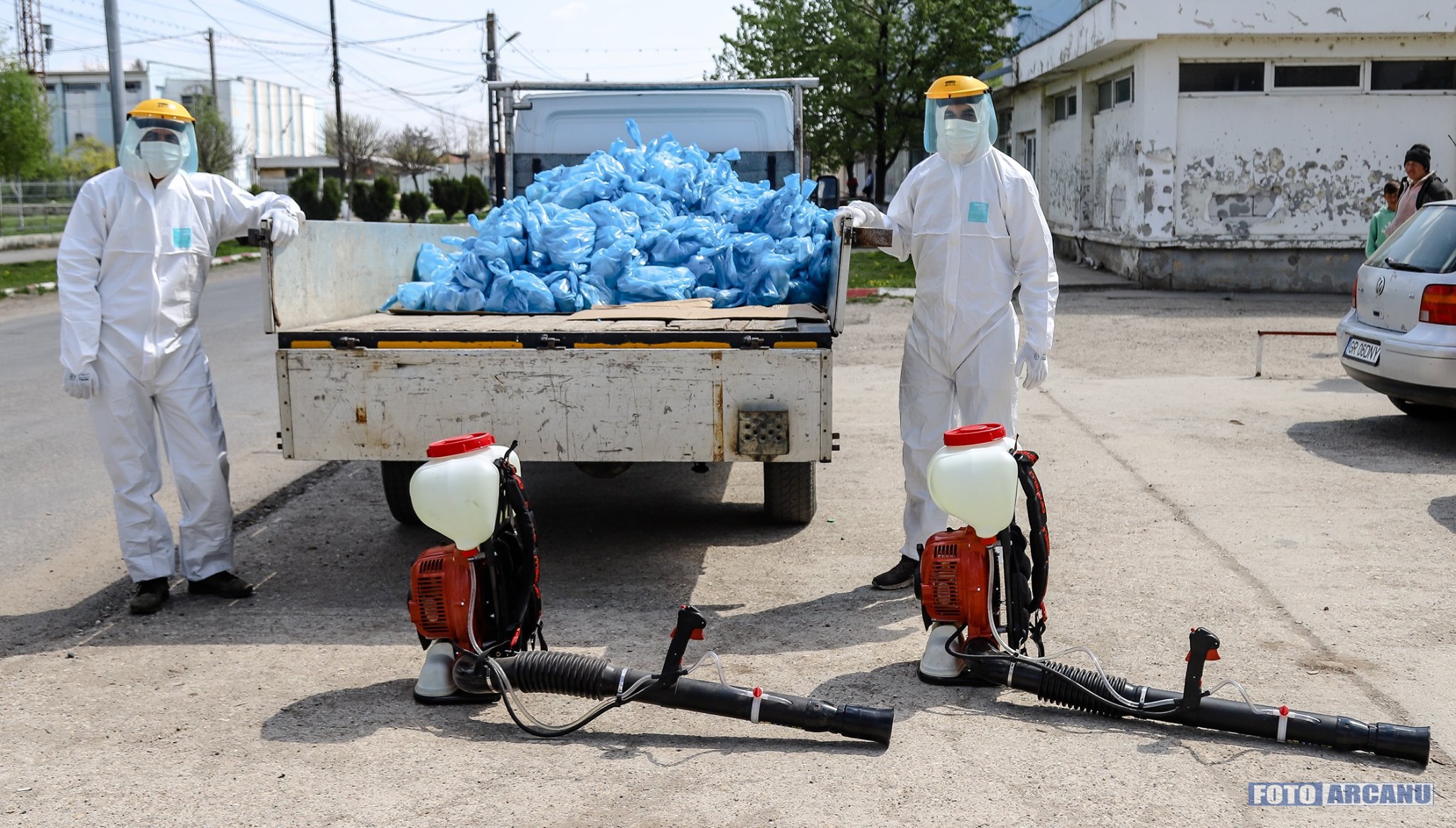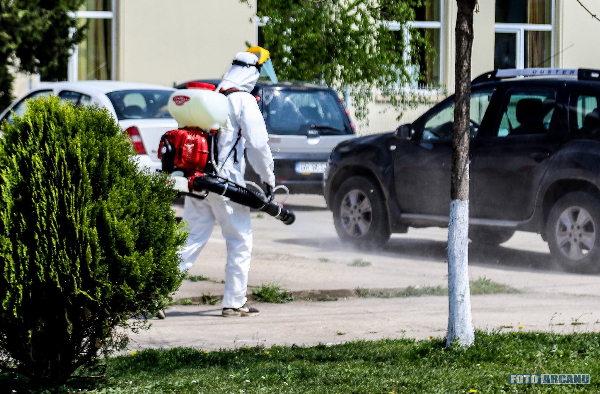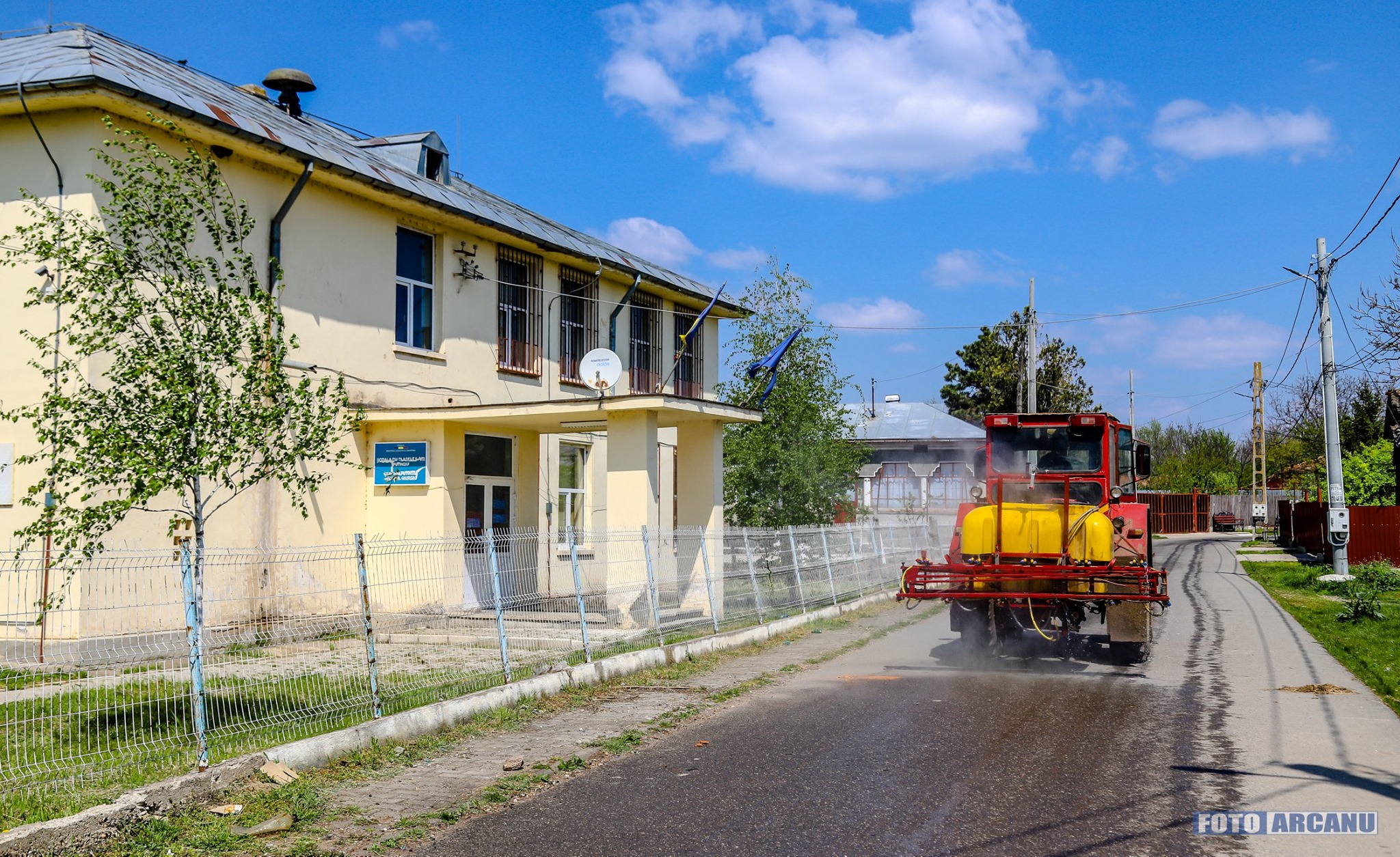 Dezinfecție generală la Putineiu, făcută de primarul Gheorghe Breazu și câţiva voluntari (FOTO)
