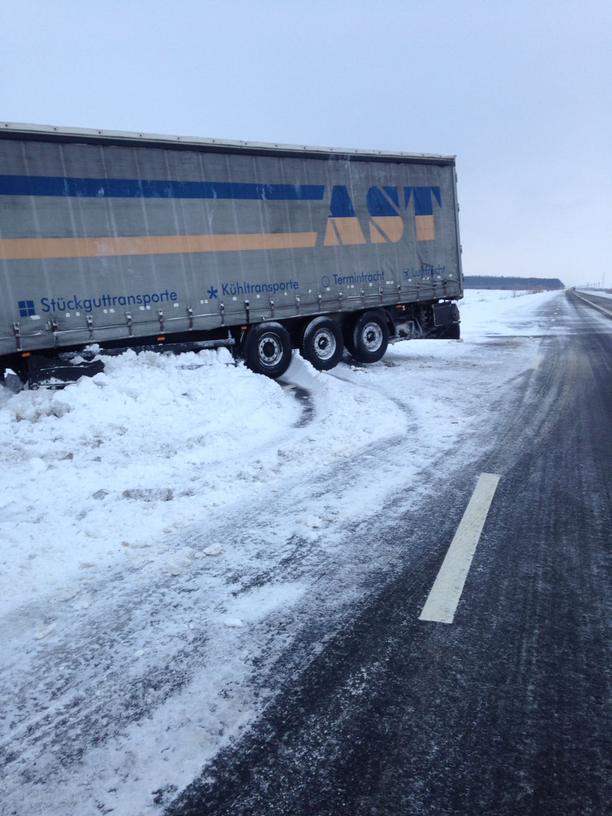 Nu se cunoaşte cauza pentru care şoferul sirian, cu reşedinţa în România, a ieşit cu mastodontul de pe carosabil.